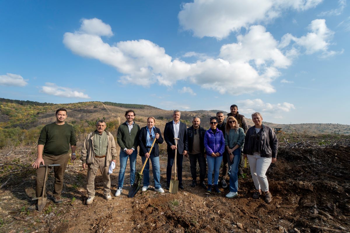 В знак на приемственост и партньорство общината и Нестле България си размениха лопати, поставяйки началото на възстановяването на 65 декара опожарени гори в местността „Седми километър“