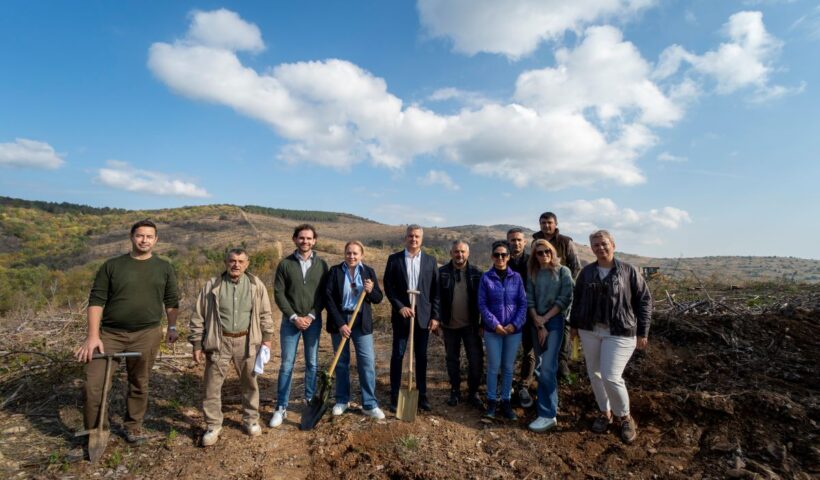 В знак на приемственост и партньорство общината и Нестле България си размениха лопати, поставяйки началото на възстановяването на 65 декара опожарени гори в местността „Седми…